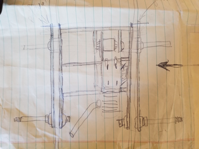 Sketch after sketch, it came alive as the bits were collected & scavenged. Once the basic bits were collected, some new, some rusty used parts... it was laid it out.
