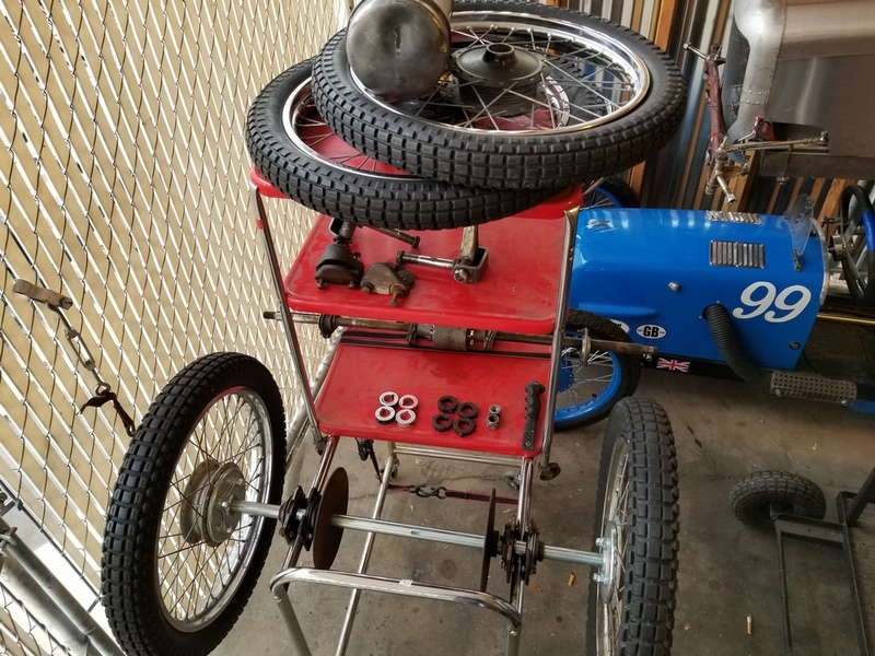 - Outer center drive axle adornments (the things with 6 holes in them) were sliced Manco Go kart rear rim halves coupled to laser cut inserts to achieve the look. Originally created to achieve Go-Power vintage knockoffs in the vintage karting realm. They were of Kelly's own design, only 8 exist. They are decorative only, however serve a purpose by keeping from cutting too much of the center axle off. (also serves as a conversation piece when average joe can't quite figure out if they're actually go kart clutches.)