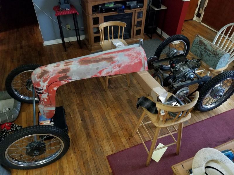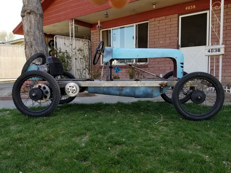 He originally just wanted a normal cyclekart with NORMAL front leaf springs as his prior jalopy's all used quarter eliptics and transverse jobs. He was looking for a normal build.