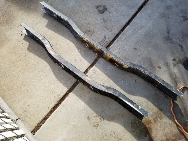 - Leaf springs, 2 main springs from rusty trailer. All leaves discarded but the main ones. Were 2" wide, sliced off 1/4" from each side making 1.5 in springs.