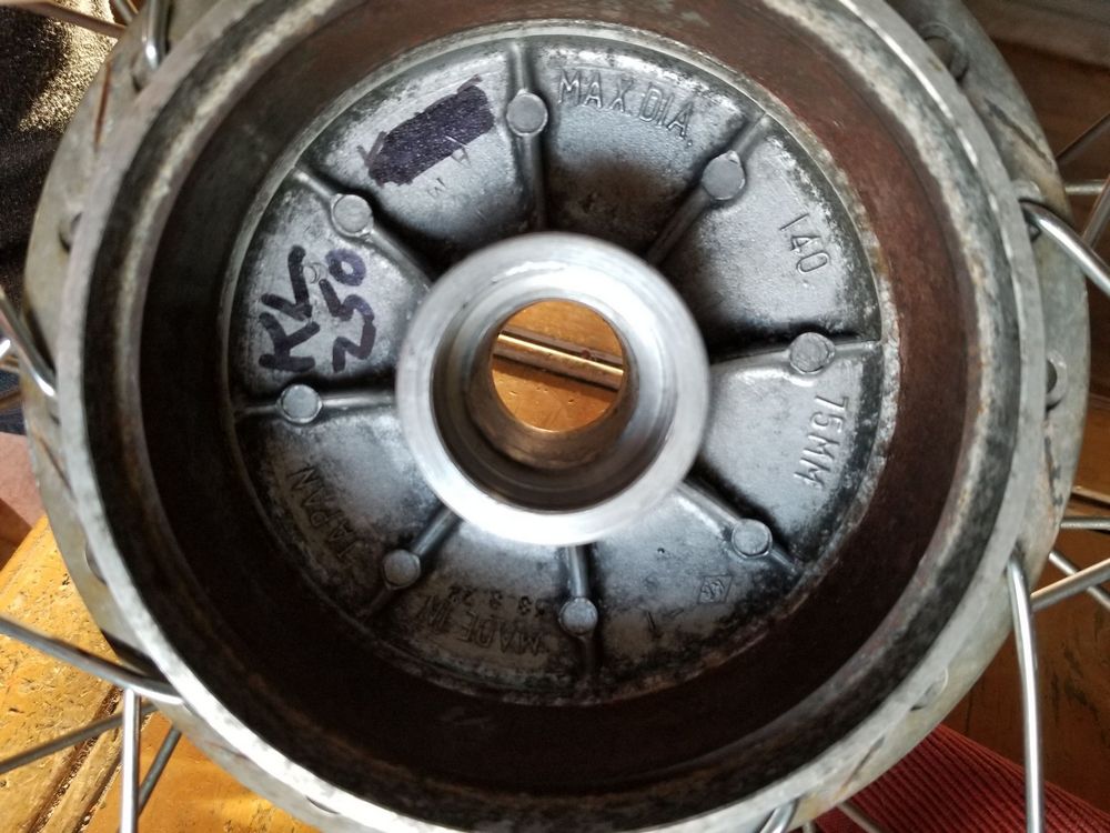 | Late 60's Yamaha LS2 100 REAR RIMS, also found on AT1, CT1, HT1, and CT2 models. Common sizes were 18 x 1.40 and 18 x 1.60 | N/A | N/A | 1" | Mark Parnell makes an adapter that works for it. Widening of the original holes in the hub aren't even needed. It bolts right on. You will have to slice off the outer and inner bearing areas for this one to work. Also, not all do work. Those hubs with OVAL holes won't work. Look closely, find the ones with 4 HOLES like the Honda Trail 90 Hubs. |