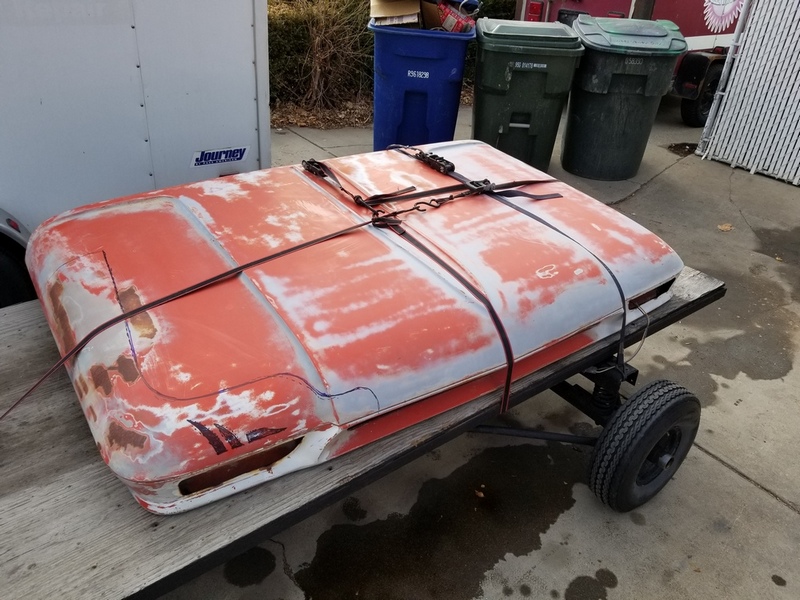 Next up... commit murder. Wipe out a 1963 Chevy truck hood. The idea came at lunch one day driving around when he said he saw a similar rusty truck on the street, covered in snow... then turned his head sideways.