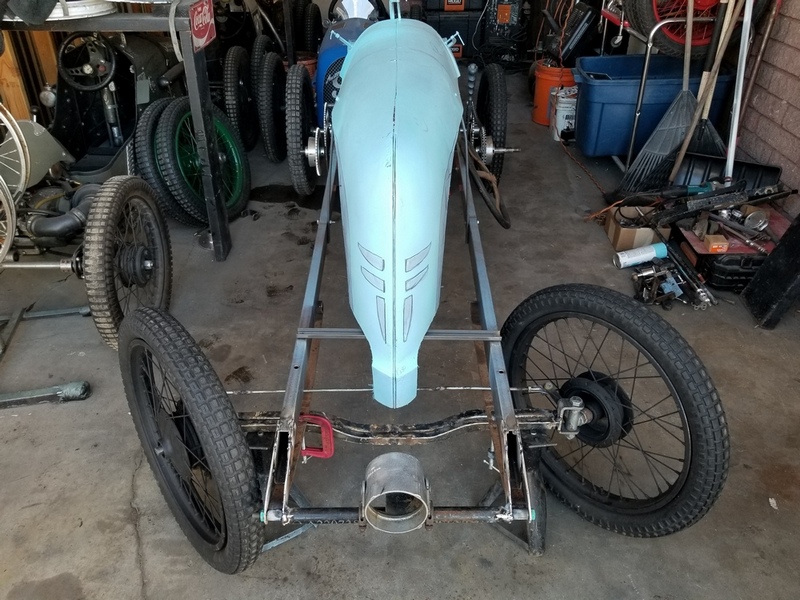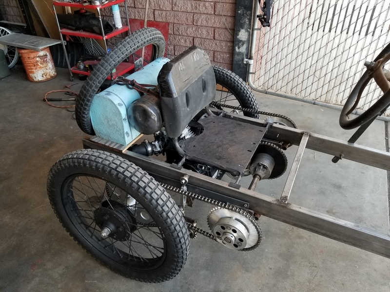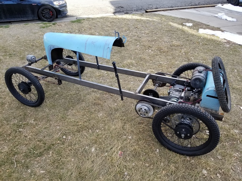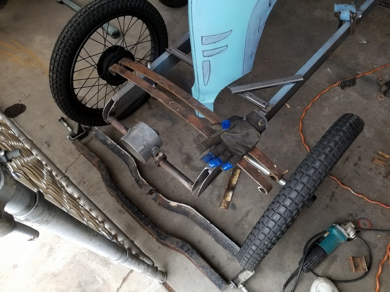 He originally just wanted a normal cyclekart with NORMAL front leaf springs as his prior jalopy's all used quarter eliptics and transverse jobs. He was looking for a normal build.